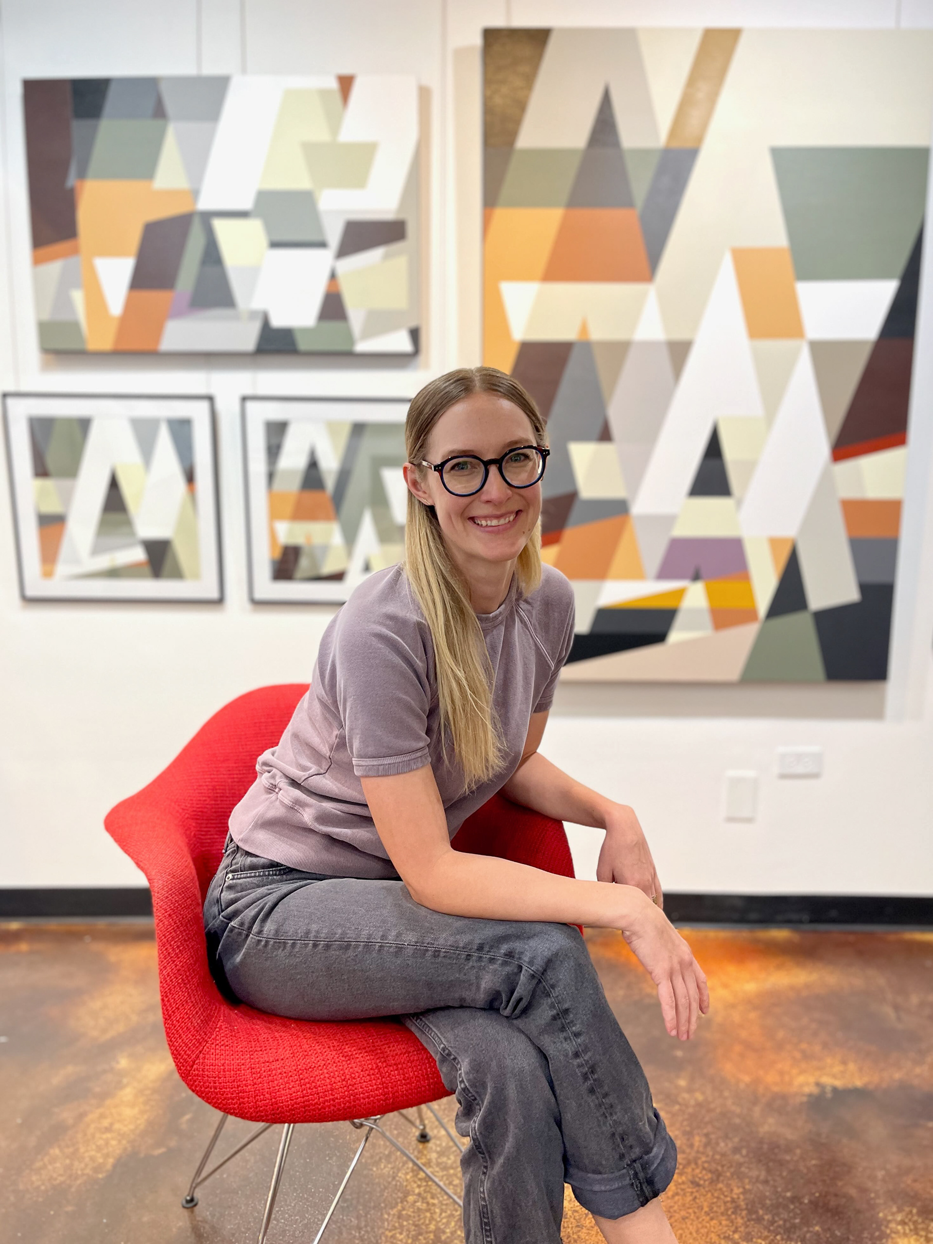 Rachel Espenlaub (b. 1991) is a painter from Colorado Springs, CO, currently creating geometric abstract acrylic paintings.