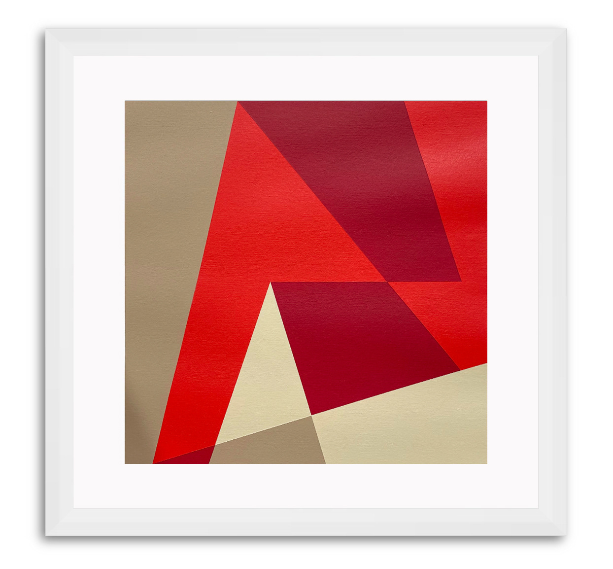 Framed in a 11 x 11 in. white wood frame with white mat.