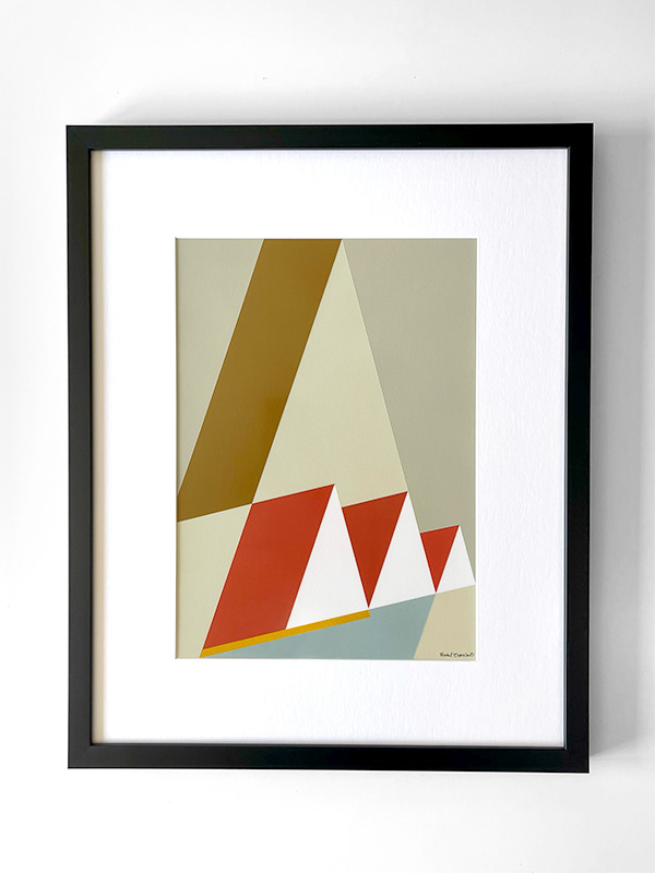 Framed in 12 x 16 in. black metal frame with a white mat